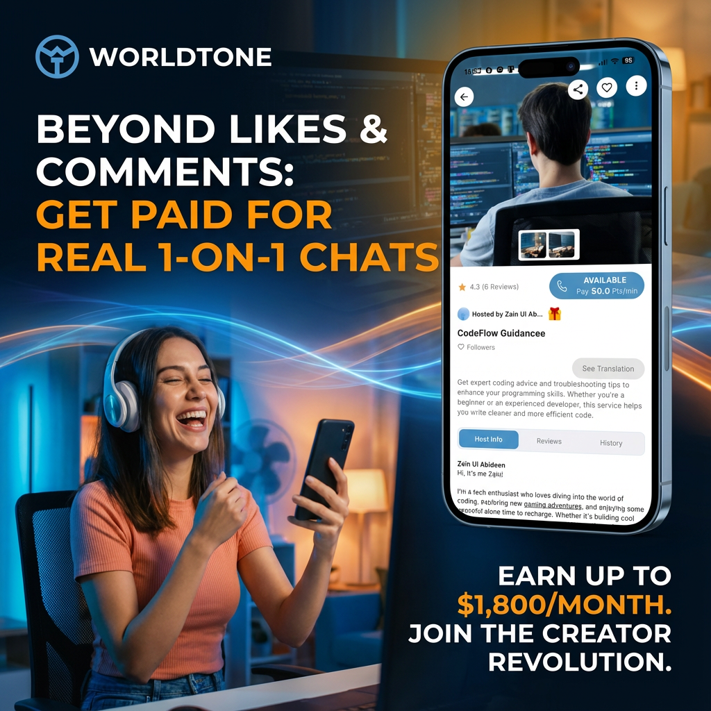 Why not turn your conversations into income? WorldTone allows you to monetize your chats, creating a rewarding experience both financially and personally. This isn’t just a side gig—it’s a platform for genuine connections that pay. Your expertise becomes your asset, and engaging chats become your currency. Imagine discussing your favorite topic and getting rewarded for it. It’s not only satisfying but also empowering, as you realize the value of your knowledge.